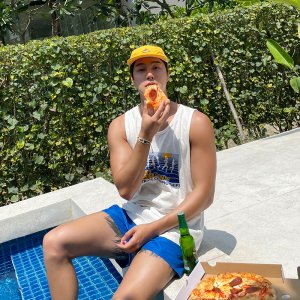 夏プリントフードメンズノースリーブTシャツ